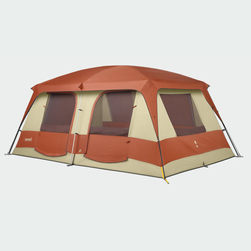 This cabin-style tent features vertical walls, which are ideal for using cots and maximizing space & livability inside! Big tent for family